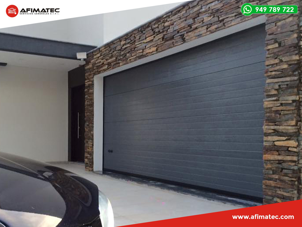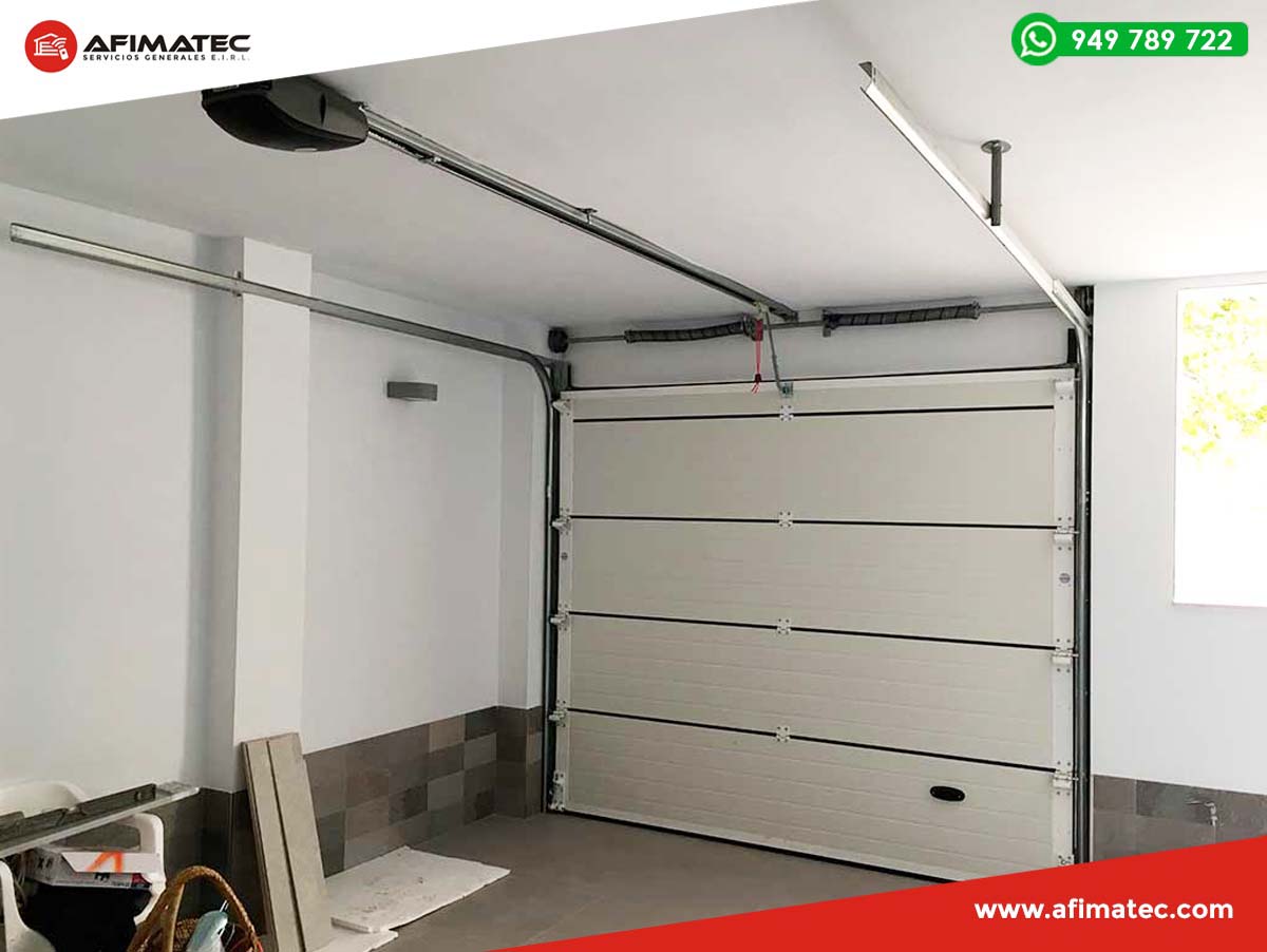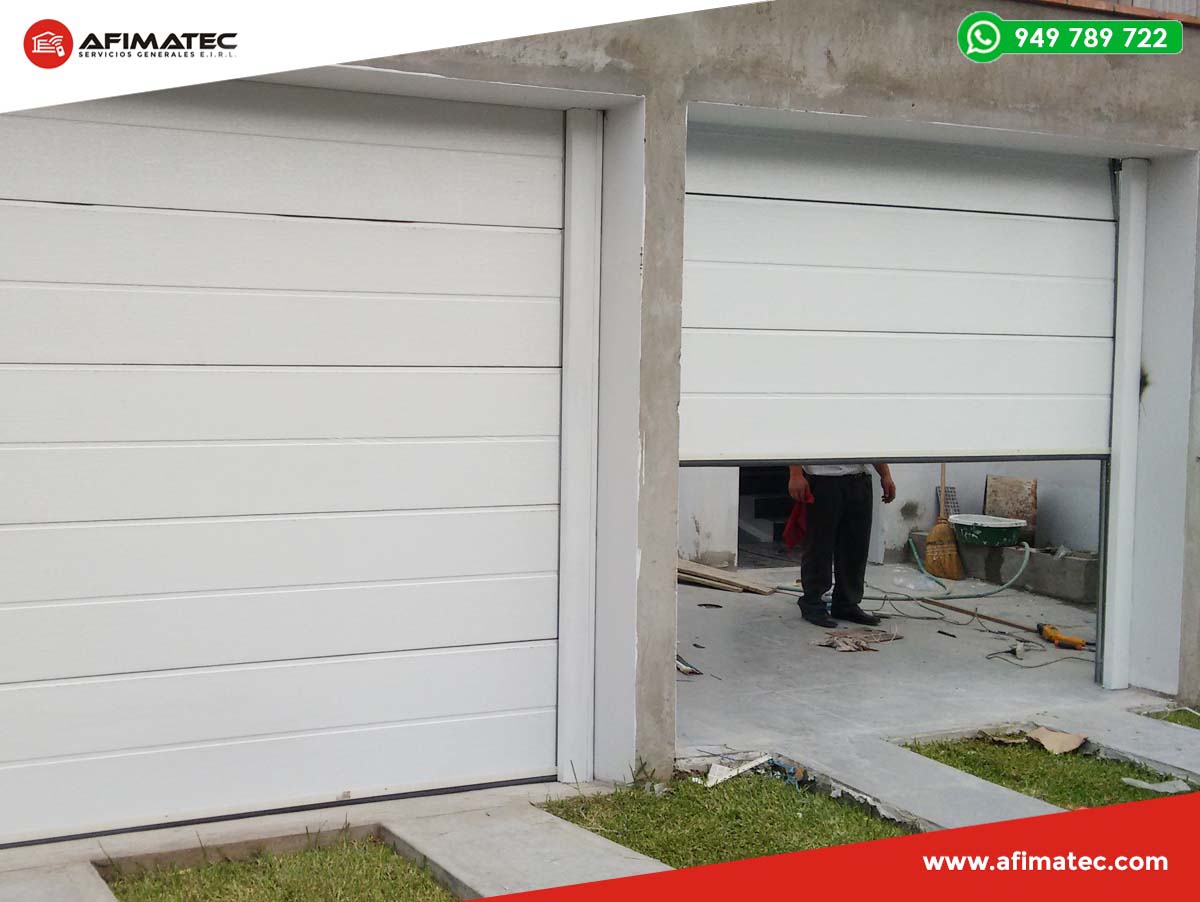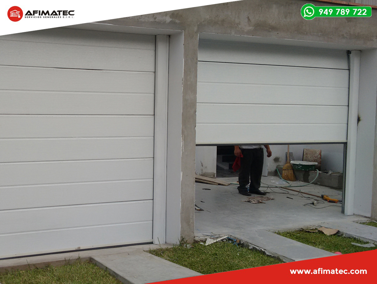 En AFIMATEC realizamos venta, instalación y mantenimiento de puertas seccionales, las cuales, están básicamente formadas por 4, 5 y/o 7 paneles, que se elevan a través de unas guías laterales y son compensadas mediante un sistema de resortes de torsión. Tienen extraordinaria suavidad de funcionamiento: las secciones se deslizan hacia arriba, sobre unas robustas guías de acero galvanizado, mediante rodillos regulables de material sintético que incorporan rodamientos a bolas.